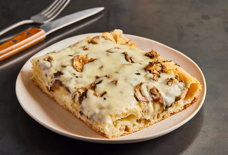 Champignons, mozzarella, crème parfumée à l'huile de truffe blanche, roquette