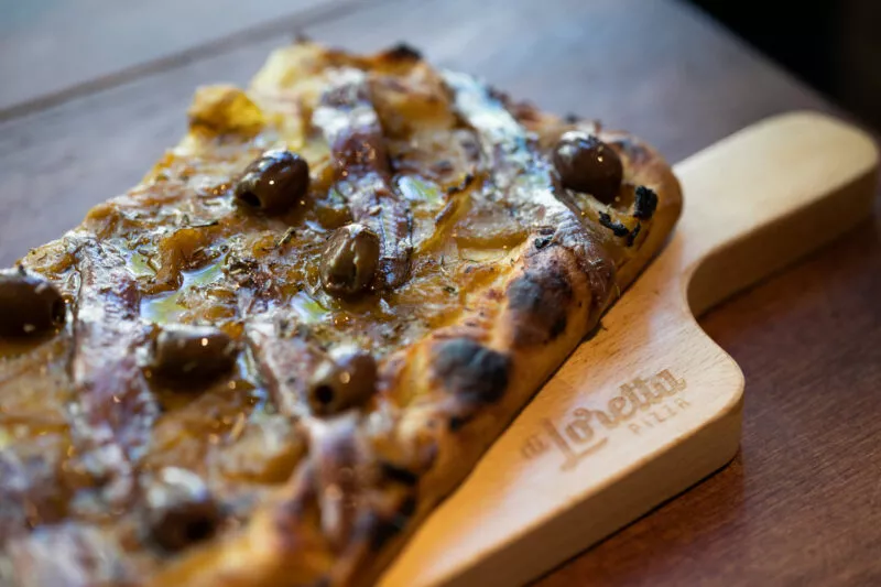 Oignons confits, anchois de Cetara, olives taggiasche et thym