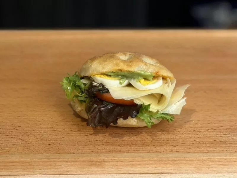 Mayonnaise basilic, misticanza, tomates, pecorino romano, oeuf, pulpe de tomate à l'a ...