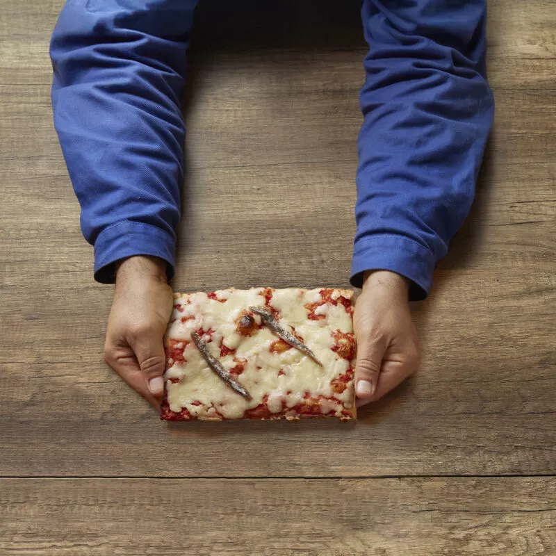 Mozzarella fior di latte, anchois & notre sauce tomate italienne.