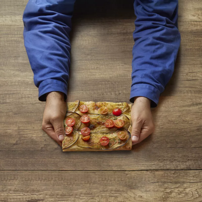 Aubergines, huile pimentée, persil, ail, pomodorini