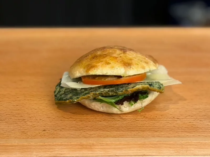 Mayonnaise basilic, misticanza, tomates, pecorino romano, oeuf, pulpe de tomate à l'a ...