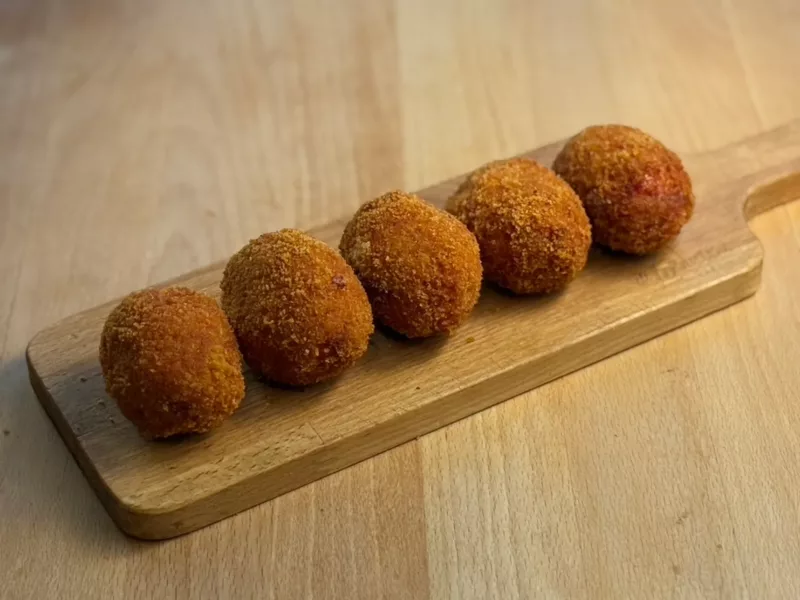 Le suppli classique à la romane style ! Rissotto frit à la tomate et mozzarella, dél ...