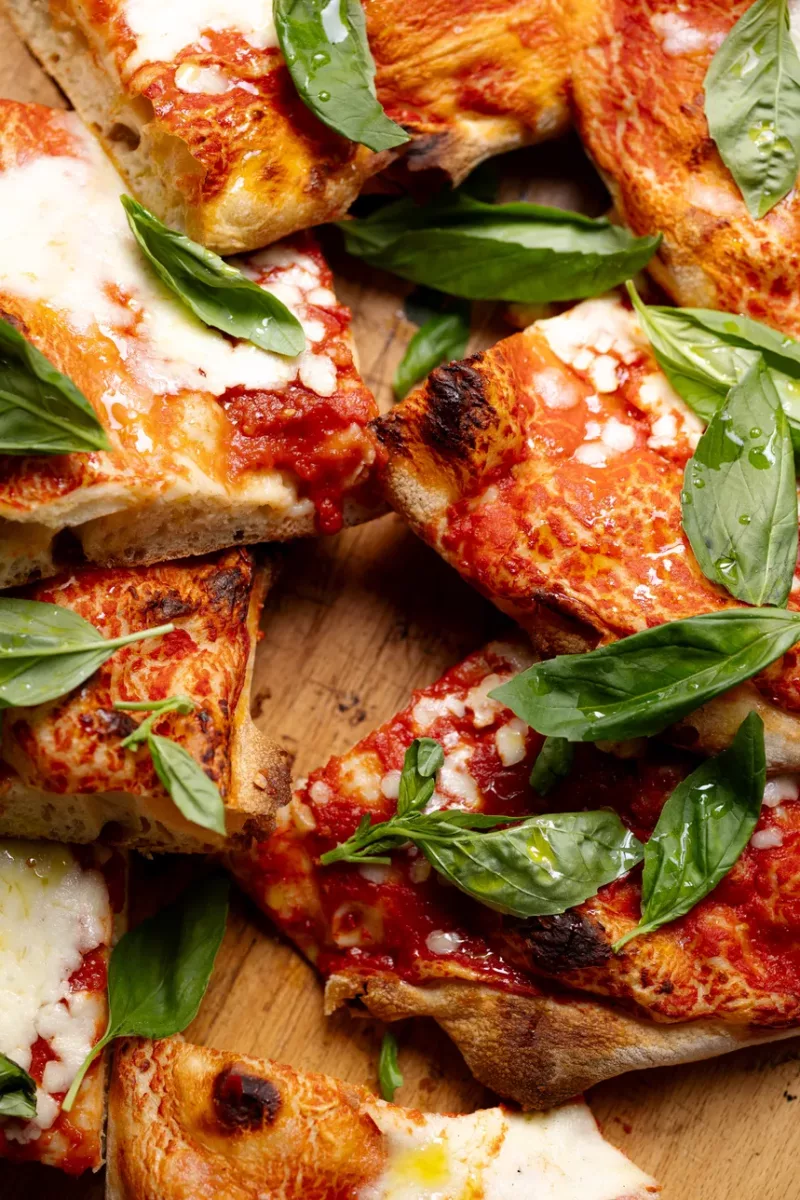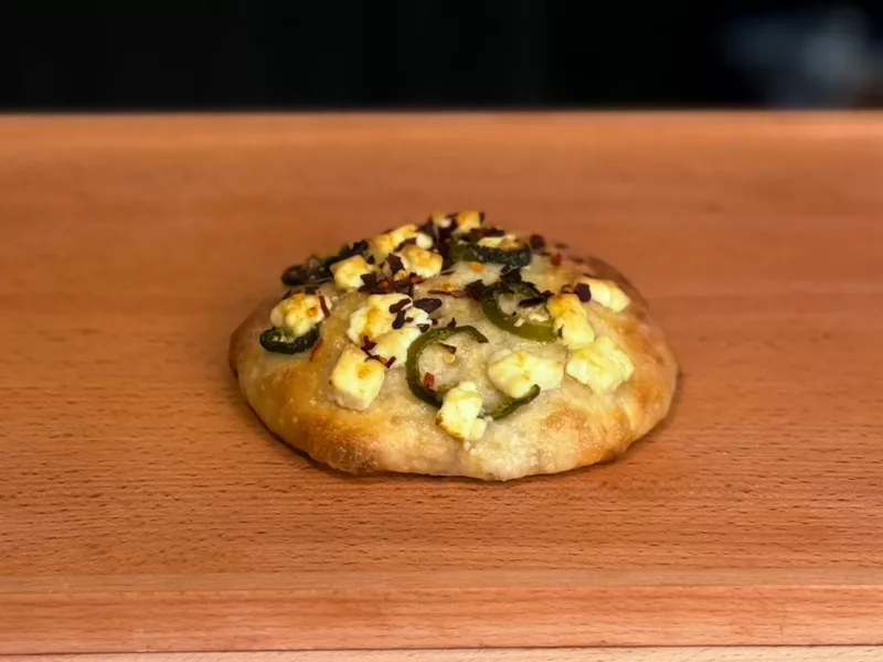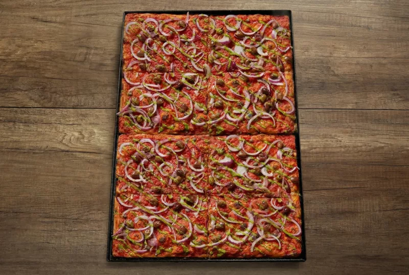 Notre pizza signature : tomates, oignons rouges (frais), câpres (très peu), pesto et ...