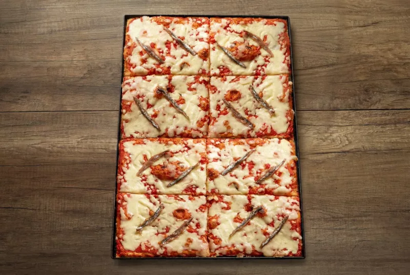 Mozzarella fior di latte, anchois & notre sauce tomate italienne.