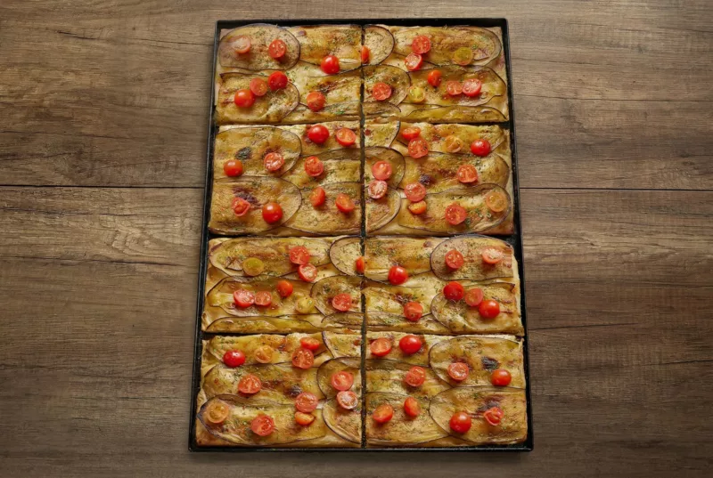 Aubergines, huile pimentée, persil, ail, pomodorini