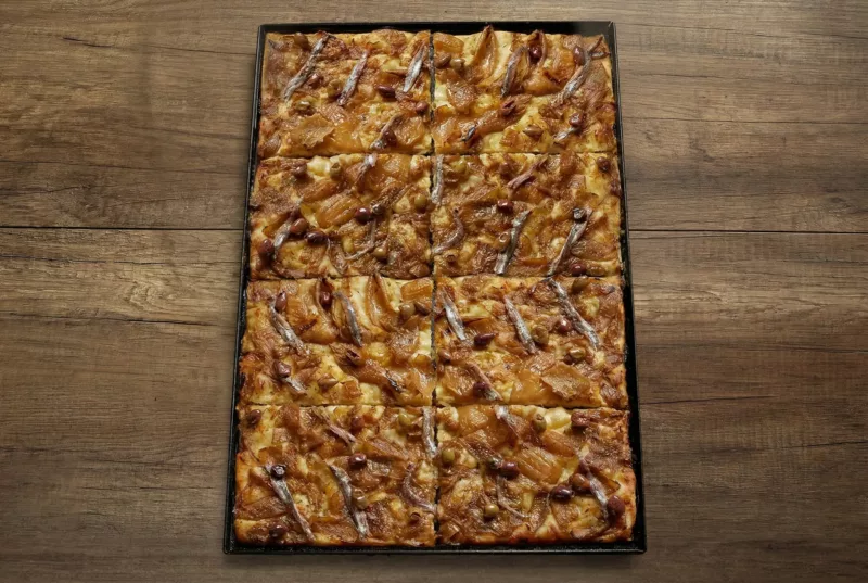 Oignons confits, anchois de Cetara, olives taggiasche et thym