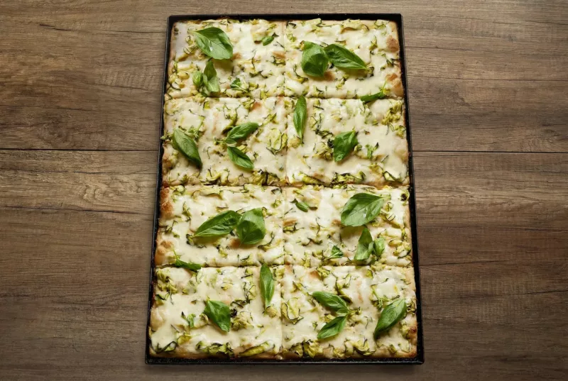 Courgettes marinées ail, piment et basilic, mozzarella fior di latte